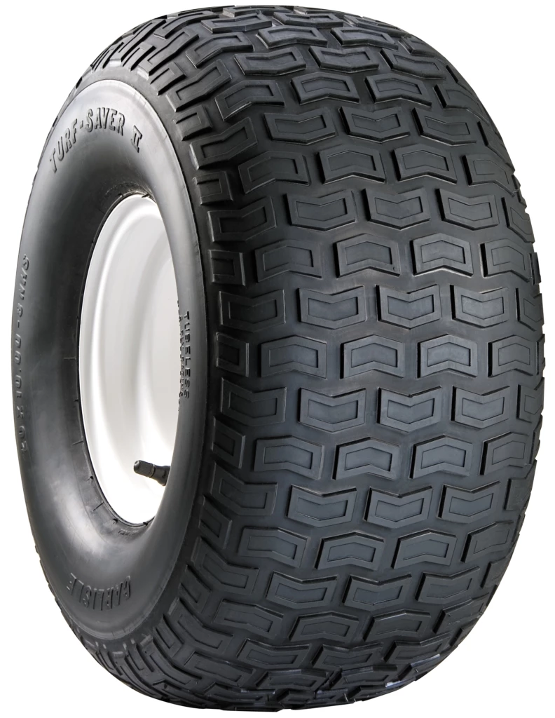 Carlisle Turf Saver II Tire has a round-shouldered design. A value tire for residential applications. The Turf Saver II is a modified version of the original Turf Saver. It features a round shoulder profile and is designed for use on residential riding lawn mowers. Commonly used for towable lawn carts, spreaders, sprayers, and other mower attachments. *Non-highway service.