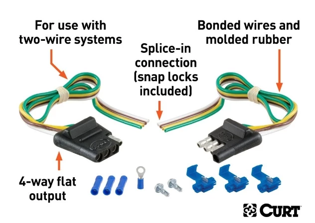 - Splices into existing wiring to provide connections for both vehicle and trailer