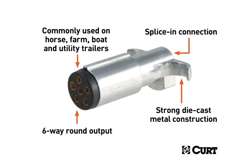 - 6-way round connectors commonly used for horse, farm, boat and utility trailers