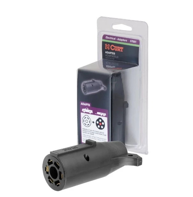For this very common problem, CURT offers a quick and simple solution in the form of an electrical adapter. An adapter is an electrical device that allows a connection to be made between a mismatched trailer plug and vehicle socket. It easily plugs in your vehicle’s electrical socket and usually requires no additional wiring. CURT offers an array of adapters to accommodate most types of plugs and sockets, including 4-way flat, 4-way round, 5-way flat, 6-way round, 7-way RV blades and more.