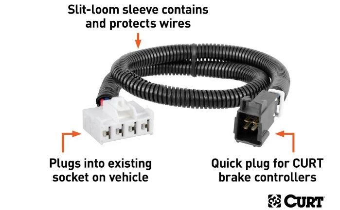 CURT quick plug brake controller harnesses make the installation of your brake controller literally a snap. They are designed to allow your brake controller to plug directly into your vehicle’s power system using an original equipment connector. They are equipped with two plugs — one that snaps into your vehicle’s original equipment socket and the other that connects to a CURT brake controller. CURT quick plug harnesses install with plug-and-play convenience to get you setup and on your way with time to spare. They include two feet of wire and a slit loom sleeve to keep wires well protected and contained.