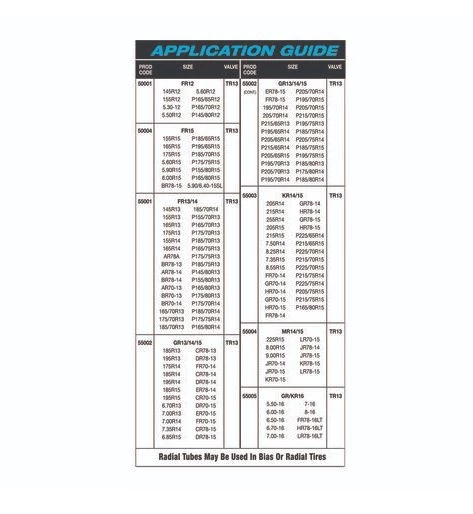 Use the guide on left to find correct inner tube. Product Code equals Model Number.