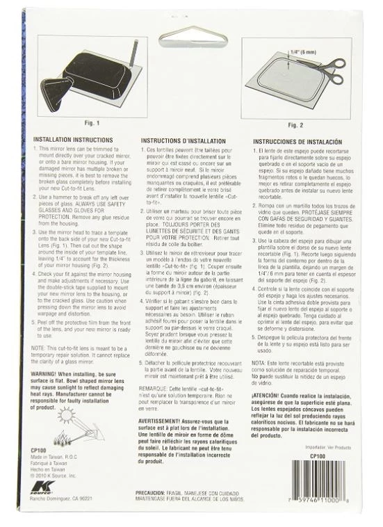 Multiple uses wherever you need a mirror. Fixes vehicle mirrors easily. Adhesive mounting tape included. Must be used on flat surfaces.