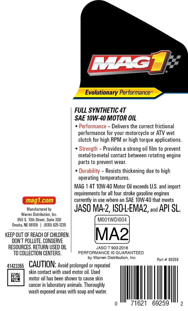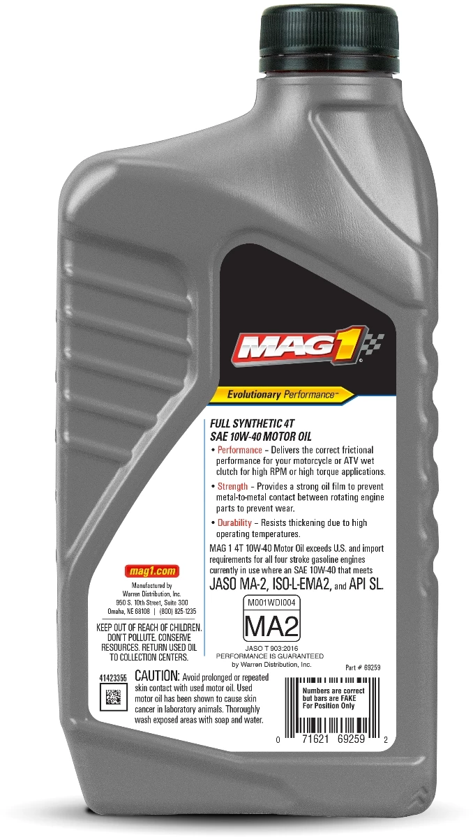 MAG 1® Full Synthetic 10W-40 4T Motor Oil is specially engineered for small four stroke engines used in recreational powersports.