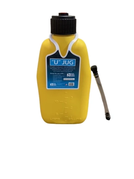 This 5 Gal Utility Jug with Hose is made with only the highest quality virgin high-density polyethylene, including 30 percent more material than standard containers to withstand the roughest treatment. This 5 gallon container is subjected to a 15-point quality test and carry a 3-year limited warranty through the Manufacturer against cracks, leaks, or splitting. This square jug features an ergonomically contoured handle, a bottom grip for easy pouring, and a non-breakable multipurpose cap with rubber gaskets.