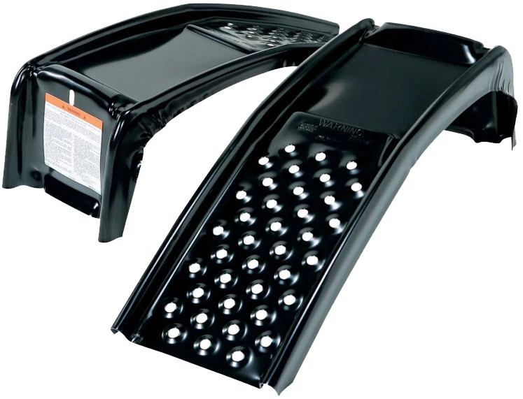 The Tru-Cut Ultra-Ramps Steel Truck Service Ramps are ideal for easily raising most trucks, cars, or SUVs for service and maintenance. These ramps feature a stamped steel structure with heavy-duty raised grip holes for extra traction, and are available with solid steel supports to accommodate vehicles weighing from 6,500 lbs to 9000lbs. Both versions feature the same dimensions and loading surface and include an angled wheel stop to prevent the vehicle from rolling off during loading. Each truck service ramp has a dimension of 35 ” long x 13 ” wide x 9¼” high total ramp size which includes an 11″ by 9″ platform at the top.
