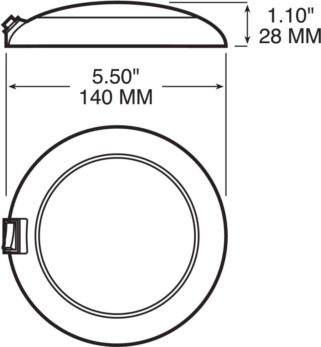- 30-diode LED 5.5″ diameter round dome/interior light.