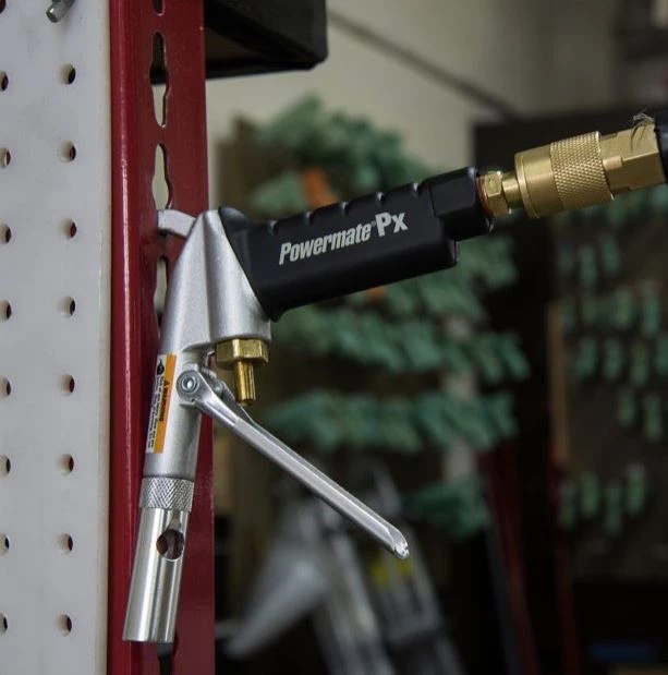 The Powermate P035-0020SP High Performance Blow Gun delivers 92 SCFM and 88% more air flow than standard blow guns. The ultimate flow tip draws in air through the side ports to increase air delivery from the blow gun and provides more than enough power to clean large workshop areas, outdoor furniture, lawn mower decks, large machinery and heavy equipment. The high performance blow gun comes with a large storage hook for easy access and meets OSHA standards. An ergonomic handle with soft comfort grip on the blow gun offers a sure hold and comfortable use.