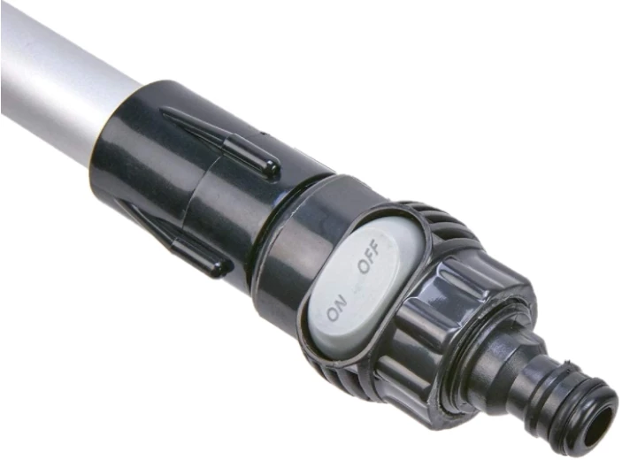Turn an ordinary garden hose into a versatile wash brush! This washer picks up where other models leave off. Connects to your garden hose. Soft brush head . Includes rubber bumper on a brush head to prevent scratching. Aluminum handle telescopes up to 5’9″. Folds down to 40″ for storage.