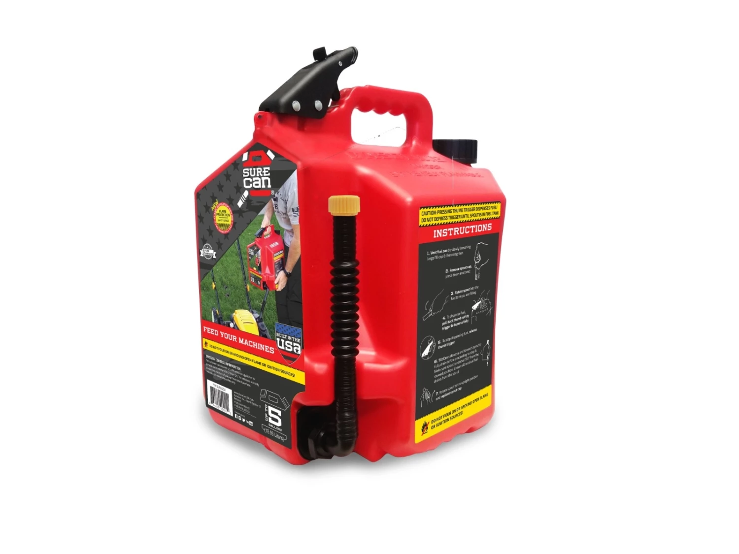 The award winning 5 Gallon SureCan is perfect for those bigger machines, it features patented technology and hand grips at the bottom that helps you support the weight easier! The 5 Gallon SureCan offers its user the best experience they have ever had with a fuel can especially filling your ATV or generator.