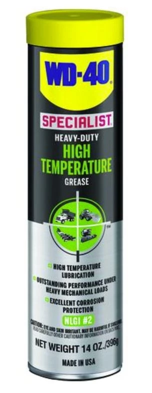 A lithium-based grease built to perform in high temperatures and high-friction mechanical loads. WD-40 Specialist High-Temp Grease was engineered to meet the demands of protecting high-speed bearings in applications involving high temperatures and heavy mechanical loads. With a drop point of 625 degrees F, it’s also excellent in cold weather. High-Temp Grease is an effective solution for heavy-duty trucks, farm and construction equipment, and it’s useful for everyday applications around the house.